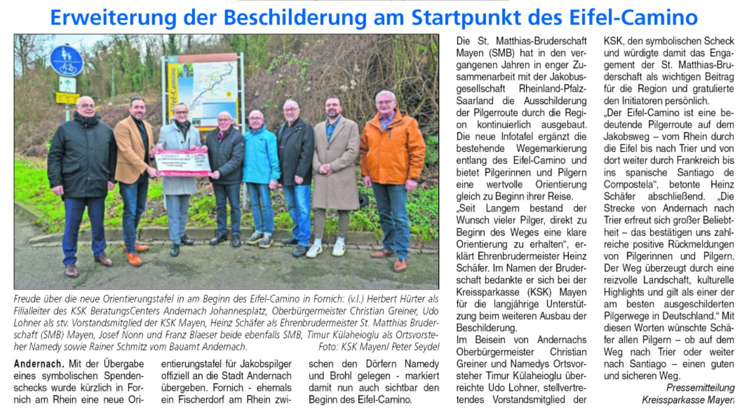 Erweiterung der Beschilderung am Startpunkt des Eifel-Camino