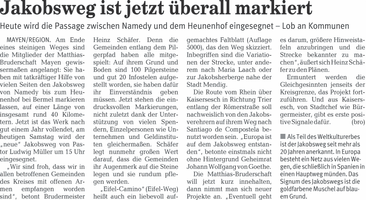 Jakobsweg ist jetzt überall markiert